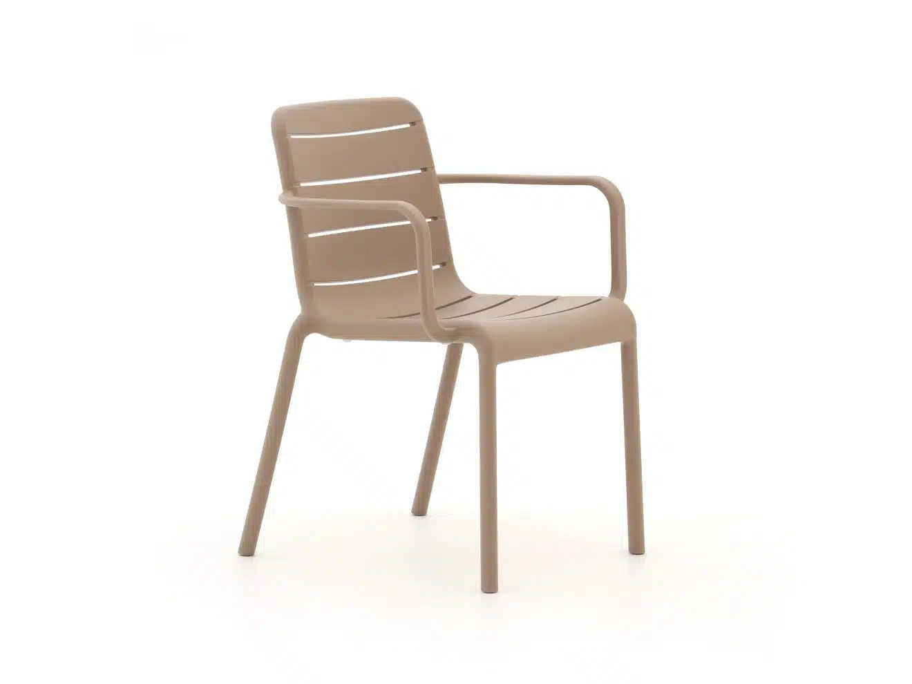 Forza Narni dining tuinstoel beige De Forza Narni dining tuinstoel beige is een kunststof tuinstoel voor wie graag veel stoelen rond de tuintafel zet en ze daarna weer snel wil opbergen. Deze stoel is stapelbaar, dus je stapelt meerdere stoelen makkelijk op elkaar als je klaar bent met tafelen. Het kunststof frame is licht van gewicht, waardoor je de stoel zonder moeite verplaatst of even aanschuift aan tafel. Kunststof heeft weinig onderhoud nodig en is door en door gekleurd, waardoor kleine krasjes minder opvallen en je stoel er lang netjes uit blijft zien. Eigenschappen * Stapelbare stoel: je stapelt meerdere stoelen op elkaar en bergt ze snel op * Lichtgewicht kunststof: je tilt en schuift de stoel makkelijk over je terras * Weinig onderhoud: je hoeft de stoel alleen af en toe even schoon te maken * Door en door gekleurd kunststof: kleine krasjes vallen minder op in het dagelijkse gebruik