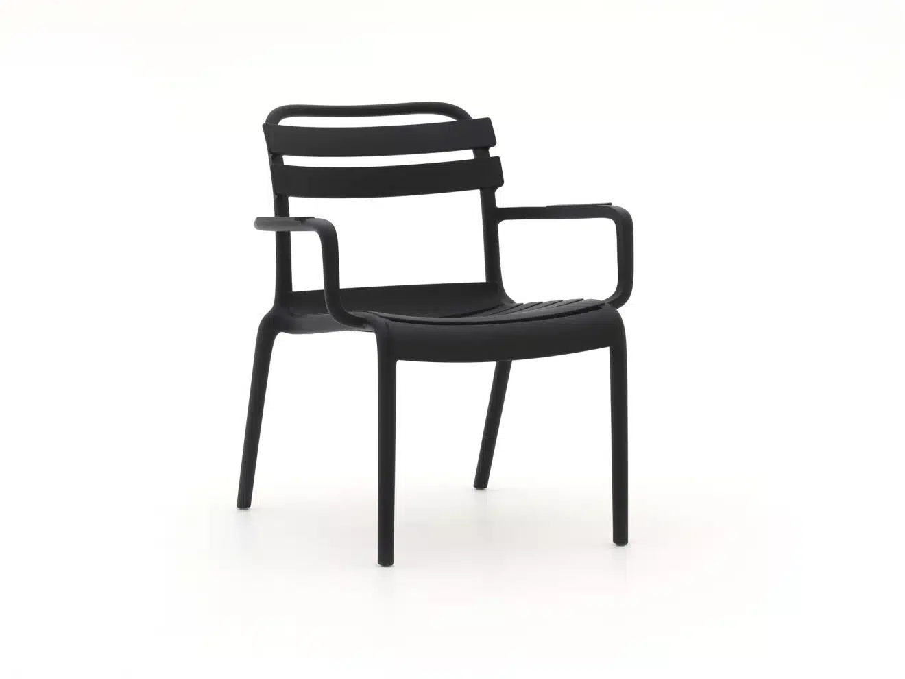 Forza Vico lounge tuinstoel zwart De Forza Vico lounge tuinstoel zwart is een tuinstoel waarin je lekker onderuit kunt zakken, ideaal voor wie graag relaxed zit op het terras of balkon. Door de lagere, iets naar achter geplaatste zit is deze stoel fijn voor loungen met een drankje of boek, minder om lang rechtop aan tafel te eten. De stoel is volledig van kunststof, waardoor hij licht van gewicht is en je hem makkelijk verplaatst als je je zithoek wilt veranderen. Kunststof heeft weinig onderhoud nodig en is door en door gekleurd, waardoor kleine krasjes minder opvallen. Deze stoel is stapelbaar, dus gebruik je meerdere stoelen, dan berg je ze toch eenvoudig en ruimtebesparend op. Eigenschappen * Loungestoel: de rugleuning staat wat verder naar achter, ideaal om lang ontspannen te zitten * Volledig kunststof: licht van gewicht en makkelijk te verplaatsen op je terras of balkon * Weinig onderhoud: kunststof heeft niet veel meer nodig dan af en toe schoonmaken * Stapelbare stoelen: meerdere stoelen schuif je zo op elkaar om ruimte te besparen * Zwarte kleur: goed te combineren met verschillende tuintafels en accessoires