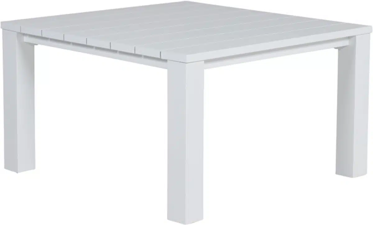 Strak en onderhoudsvriendelijk aluminium design De Cube lounge-diningtafel is volledig vervaardigd uit aluminium en afgewerkt met een mat witte poedercoating. Aluminium is licht van gewicht, onderhoudsvriendelijk en kan niet roesten, waardoor de tafel uitstekend geschikt is voor langdurig gebruik buitenshuis. Het strakke lijnenspel en het gesloten tafelblad geven de tafel een rustige, moderne uitstraling.