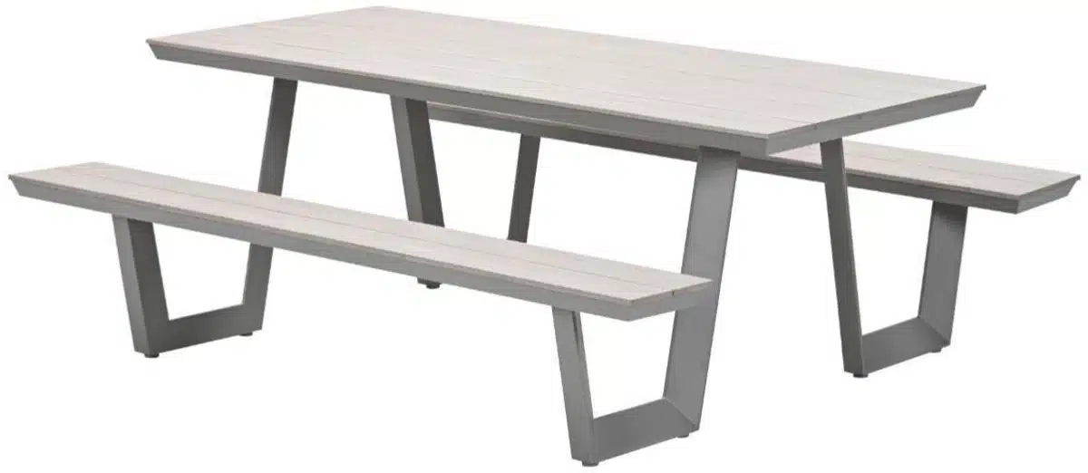 Dankzij het lichte materiaal is de set ideaal voor wie vaak wil herinrichten of voor wie de picknickset wil gebruiken op verschillende plekken in de tuin. Plaats de set bij de vijver of onder een pergola en verander sfeer en functie in een handomdraai. De stijlvolle taupe kleur combineert makkelijk met kussens en accessoires zodat je eigen sfeer snel ontstaat.