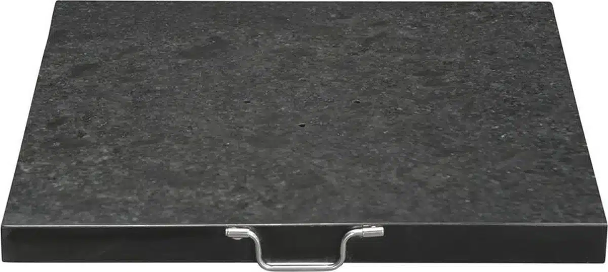 Het graniet is bestand tegen wisselende weersomstandigheden en behoudt zijn stevigheid en uitstraling bij regen wind en zon. Onderhoud is beperkt tot af en toe afnemen met een vochtige doek. Hierdoor blijft de parasolvoet jarenlang goed functioneren.