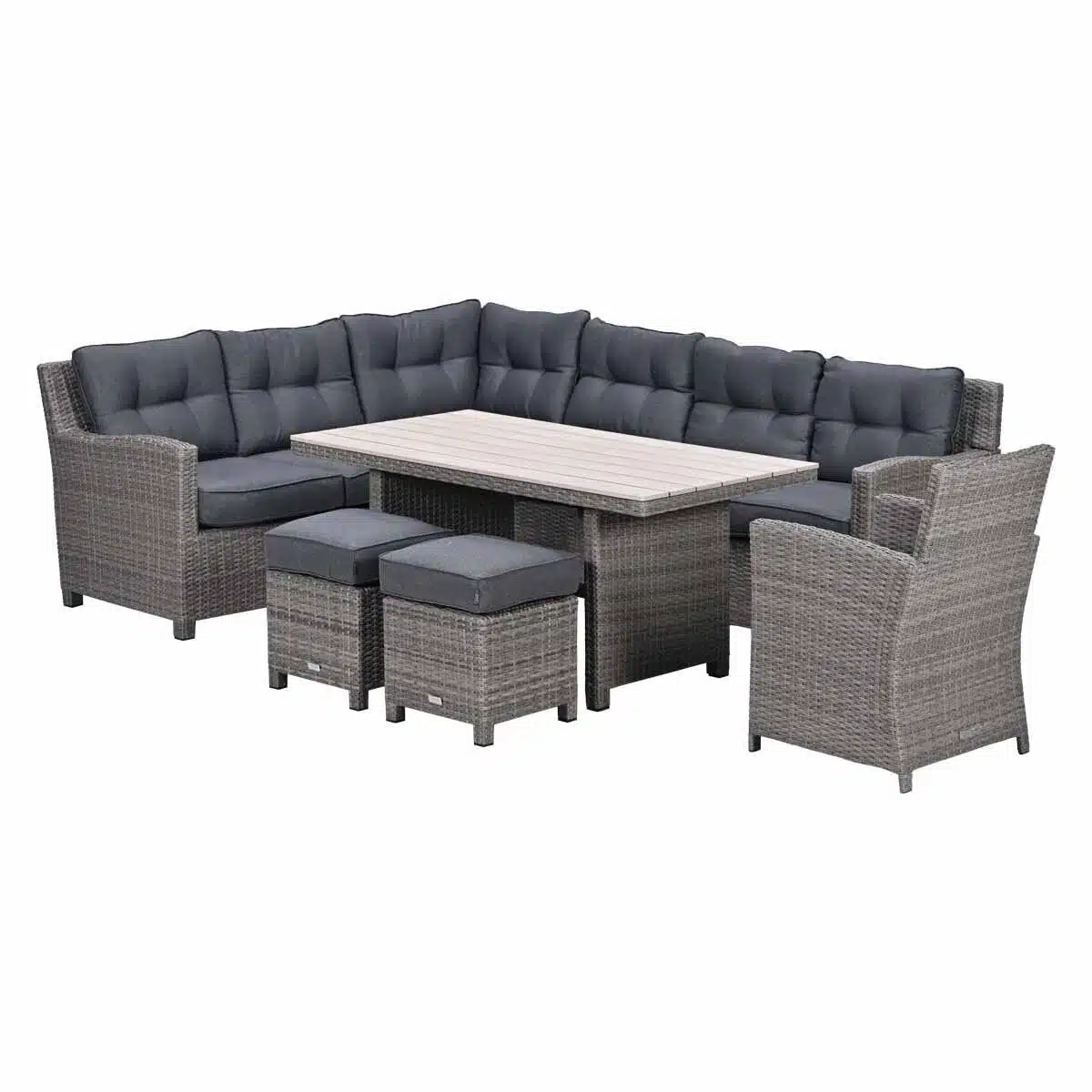 Met deze lounge dining set haalt u zowel comfort als functionaliteit in huis. Kies voor een relaxte sfeer op het terras en geniet van duurzaamheid en stijl in รฉรฉn oplossing. De set is een slimme investering voor wie veel tijd buiten wil doorbrengen en waarde hecht aan kwaliteit en comfort.