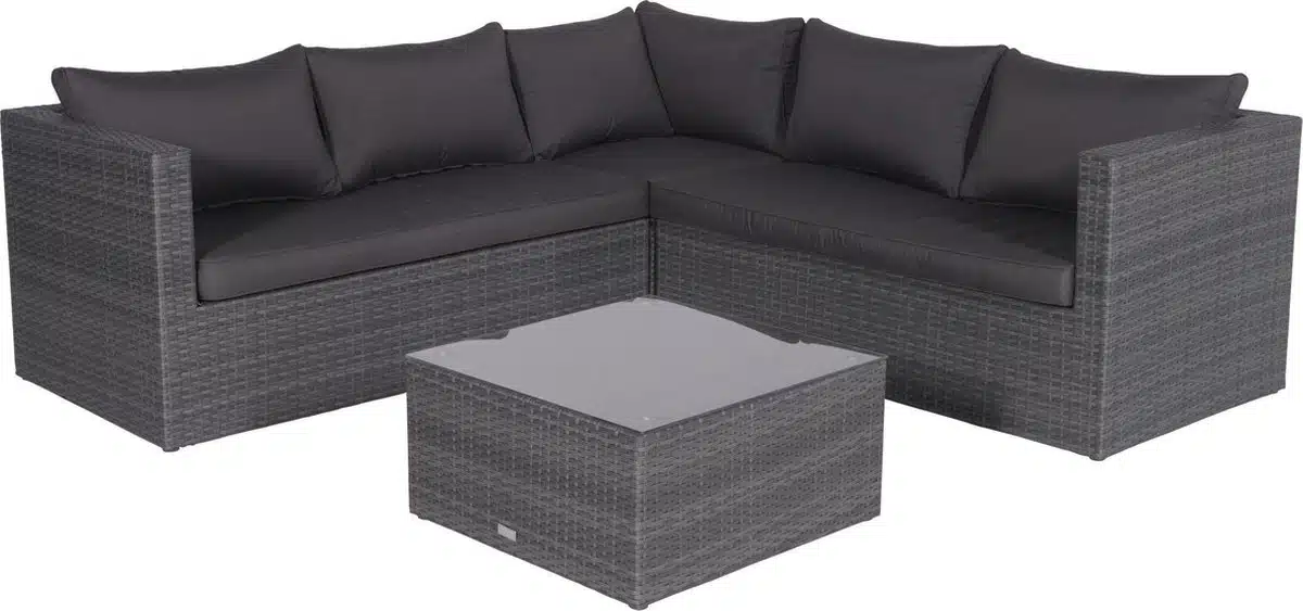 De Garden Impressions Montana loungeset combineert comfort, stijl en praktisch gebruik in รฉรฉn compacte hoekset. Dankzij het slimme hoekontwerp past de Montana perfect op een klein terras, balkon of in een compacte tuin – zonder dat je hoeft in te leveren op comfort of uitstraling.