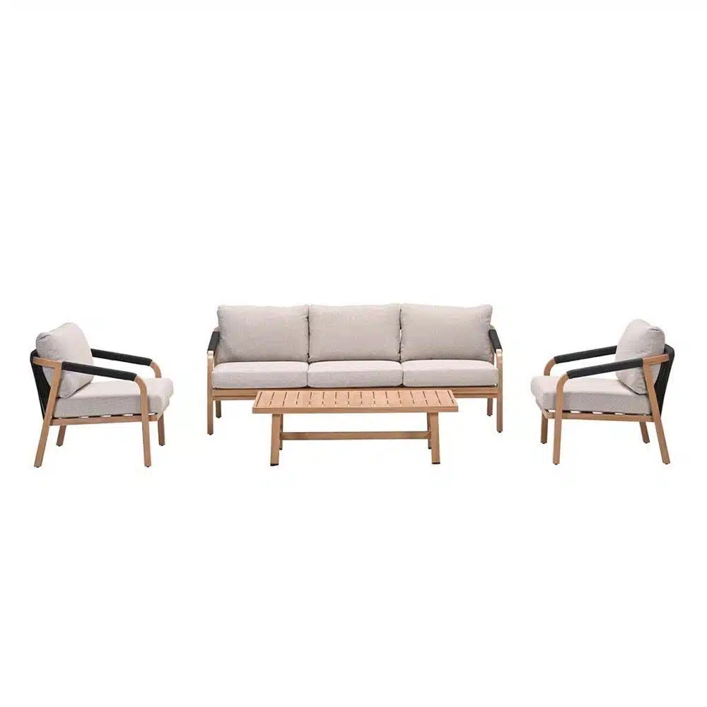 Deze vierdelige loungeset is ontworpen voor maximale ontspanning. De royale zitstukken bieden voldoende ruimte om met meerdere personen te genieten van gezellige momenten of gewoon heerlijk tot rust te komen. Het hoogwaardige materiaal waaruit de Monti Sofa Loungeset is vervaardigd, garandeert niet alleen comfort, maar ook een lange levensduur. Weerbestendig en gemakkelijk in onderhoud, blijft deze set er jarenlang prachtig uitzien.