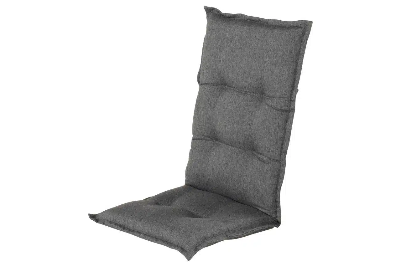 Het effen Bahama Anthracite hoge rug tuinkussen, gemaakt van 100% polyester, past perfect bij elke verstelbare tuinstoel. De fijne structuur en de diepe antracietkleur geven dit kussen een verfijnde uitstraling, wat het tot een aantrekkelijk en veelzijdig accessoire maakt voor in je tuin.