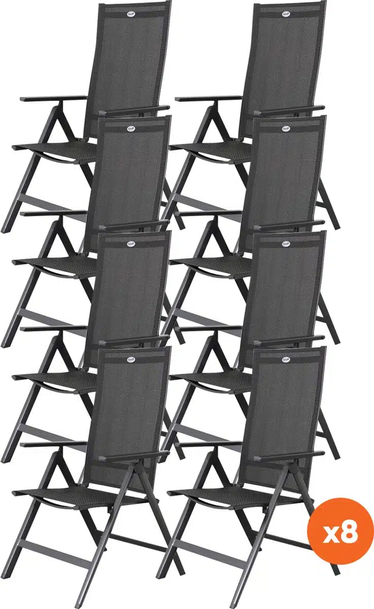 De set van 8 Hartman Napoli verstelbare stoelen is een prima aankoop. Ze zitten prettig, het verstelmechanisme werkt soepel en de afwerking is degelijk, waardoor ze mooi passen bij ons tuinmeubilair.
