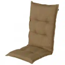Dit moderne tuinstoelkussen is passend voor stoelen met een hoge rugleuning.Hoofdkleur van het tuinkussen: bruinTuinkussen hoge rug – Bahama Taupe 2025 heeft een afmeting van ca. 124x48cm, waarbij de zitting ca. 49x48cm is.Het kussen is ca. 7cm dik.Je kunt het tuinstoelkussen gemakkelijk vastmaken met de oren van het kussen.Onderdeel van de collectie van Hartman kussens