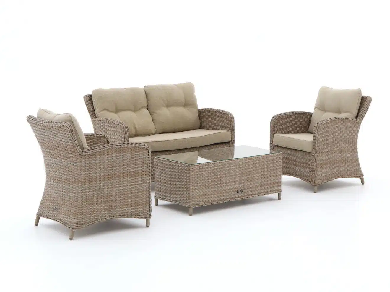 Intenso Leone/Milano stoel-bank loungeset 4 zitplaatsen Geniet van de lange zomerdagen met de Intenso Leone/Milano stoel-bank loungeset. Deze 4-delige set is een perfecte aanvulling voor je tuin of terras. De combinatie van handgevlochten wicker en comfortabele kussens in een zandkleurige tint zorgt voor een uitnodigende uitstraling en een heerlijk zitcomfort. Het lichte gewicht van het materiaal maakt het eenvoudig om de opstelling naar wens te veranderen, zodat je altijd de perfecte setting hebt voor elke gelegenheid. En met de vochtbestendige eigenschappen van het wicker, blijft je loungeset er prachtig uitzien, zelfs na een regenbui. Een set die je tuin tot leven brengt, met een knipoog naar gemak en stijl. Eigenschappen * 4 zitplaatsen: Ruimte genoeg voor het hele gezin of een gezellige avond met vrienden. Iedereen kan comfortabel zitten en genieten van de buitenlucht. * Handgevlochten wicker: Dit materiaal is niet alleen strak afgewerkt en vochtbestendig, maar ook licht van gewicht. Hierdoor kun je de set eenvoudig verplaatsen en aanpassen aan je wensen. * Inclusief kussens in zandkleur: De zachte kussens zorgen voor extra comfort en zijn afritsbaar, waardoor ze makkelijk te reinigen zijn. Zo blijft je loungeset er altijd fris en uitnodigend uitzien. * Eenvoudige opstelling: De stoel-bank combinatie maakt het mogelijk om de opstelling naar wens te veranderen, ideaal voor elke gelegenheid en ruimte.