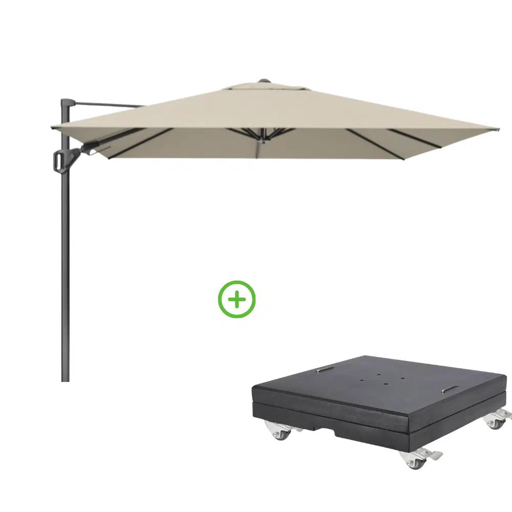 Challenger Tยฒ zweefparasol – premium doek | 400x300cm met Modena parasolvoet 150kg | Champagne