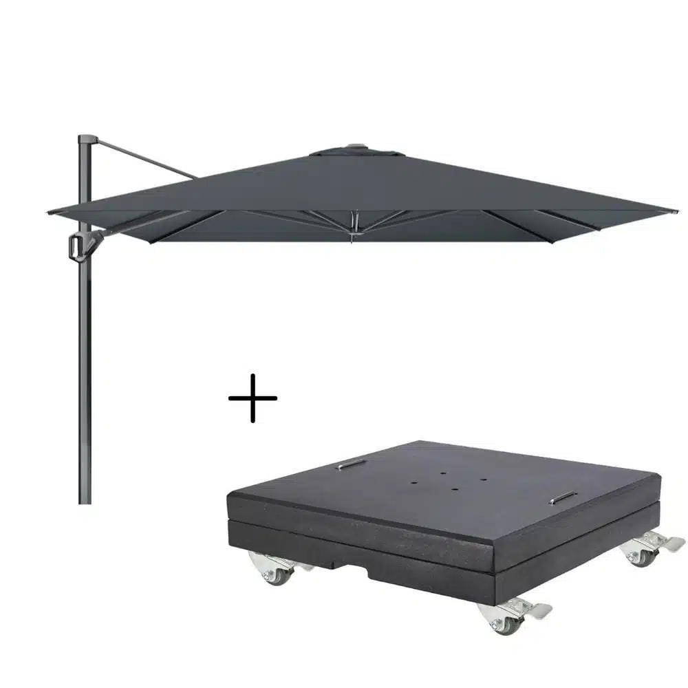 De Challenger T1 zweefparasol in de Platinum uitvoering combineert elegante vormgeving met robuuste functionaliteit. Het vierkante doek van 350 bij 350 centimeter creรซert een ruime schaduwplek voor zithoeken en eettafels. Dankzij het hoogwaardige textiel blijft de kleur langdurig fris en is het doek goed bestand tegen weersinvloeden.