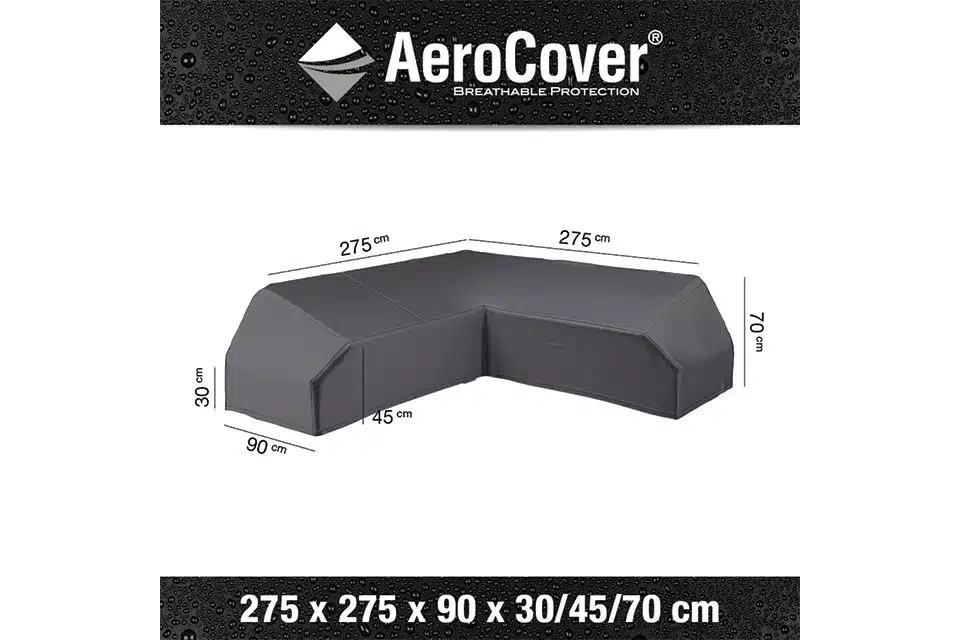 Platinum AeroCover loungesethoes 275 x 275 x 90 x 30-45-70h L Platform biedt betrouwbare bescherming voor uw loungebank en modulair platform. De hoes is speciaal ontworpen om vorm en aansluiting van een L-vormig platform netjes te omsluiten, zodat water en vuil geen kans krijgen. Het materiaal is waterafstotend en afgewerkt met sterke naden die langdurige weerstand tegen weersinvloeden garanderen.