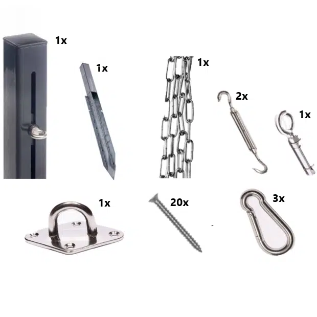 In dit complete pakket vind je alles wat je nodig hebt om je driehoekige schaduwdoek veilig en stabiel te bevestigen. Dankzij de hoogwaardige materialen is dit bevestigingssysteem zowel betrouwbaar als duurzaam, waardoor je jaar na jaar kunt genieten van deze schaduwrijke oase. Of je nu een rustig hoekje wilt creรซren om een goed boek te lezen of een gezellige plek voor een feestje met vrienden โ met dit bevestigingsmateriaal is de configuratie van jouw schaduwdoek een fluitje van een cent.
