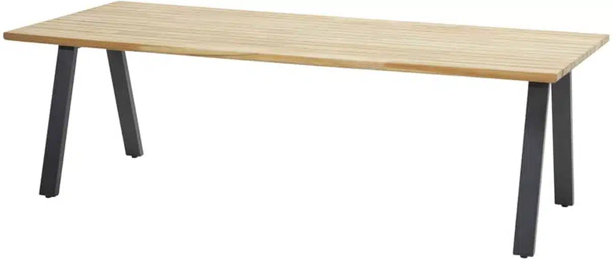 De 4SO Taste Ambassador Diningtafel Teak Antracite 240 x 100 voelt degelijk en stabiel aan, met een warme teaknerf en een strak antracite onderstel. Het ruime tafelblad is perfect voor gezelschap en het onderhoud is eenvoudig.