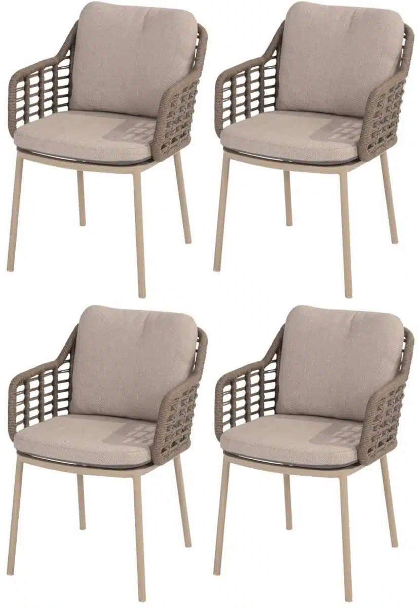 Met dit quartet voegt u niet alleen zitplaatsen toe, maar ook een stijlvolle basis voor vele buitenmomenten. Ervaar comfort en elegantie in één set, klaar om uw tuin of terras op een verfijnde manier te verrijken. De Puglia dining tuinstoel latte van Taste 4SO is een slimme keuze voor wie zoekt naar kwaliteit en gemak.