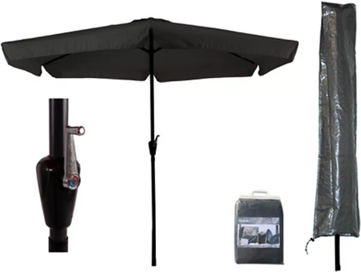 CUHOC Parasol 300 cm Zwart Basic CUHOC is een aanrader, robuust en stabiel. Hij biedt veel schaduw en de zwarte kleur staat stijlvol. Makkelijk in gebruik en degelijk afgewerkt. Goede prijs kwaliteit verhouding.