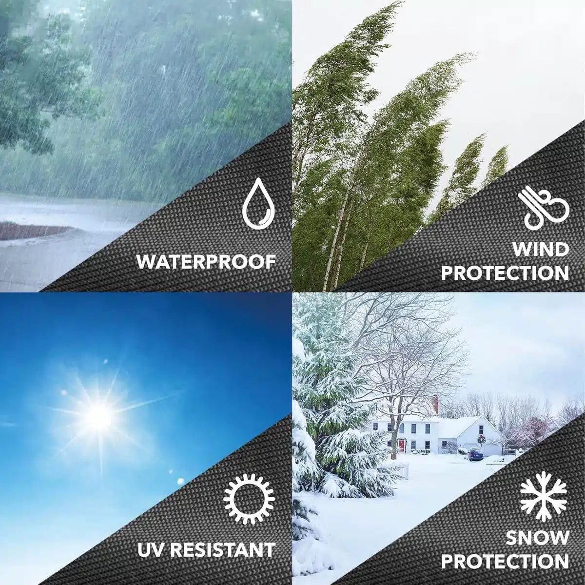 Het materiaal is waterafstotend en houdt regenwater effectief buiten waardoor stof en vuil minder kans krijgen. De stof is bovendien bestendig tegen zonlicht en remt vervorming en verkleuring af. Dankzij de stevige naden blijft de hoes ook bij regelmatig gebruik in goede conditie en ondervindt u minder slijtage op kwetsbare punten.