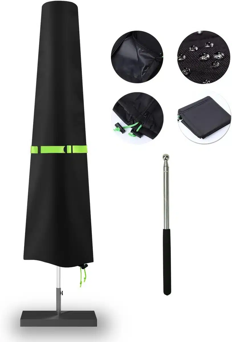 Deze waterdichte hoes is ontworpen om uw tuinparasol betrouwbaar te beschermen bij wisselvallig weer. Het materiaal houdt vocht buiten en voorkomt dat vuil en stof zich ophopen. Dankzij de sterke constructie is de hoes geschikt voor langdurig gebruik in buitenomstandigheden.