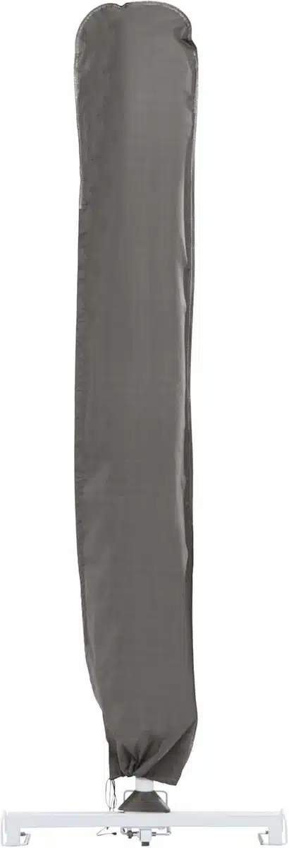 Onderhoud is eenvoudig. Veeg vuil met een zachte borstel of doek weg en spoel de hoes af met lauw water bij hardnekkige vlekken. Laat de hoes volledig drogen voordat je hem opvouwt voor opslag, zo voorkom je schimmelvorming. Dankzij het universele ontwerp past de hoes op de meeste zweefparasols tot 4,5 meter diameter, en de neutrale uitvoering past bij elke buitenmeubel stijl.