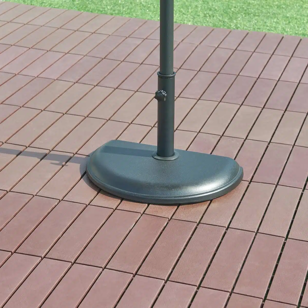 De voet beschikt over verwisselbare adapters die eenvoudig ingesteld worden voor stokken met een diameter van 33 tot 48 millimeter. Hierdoor is de voet geschikt voor veel verschillende parasoltypes, van slanke tot wat stevigere stelen, zonder dat je extra onderdelen hoeft te kopen. Het massieve betongewicht zorgt voor een lage zwaartepunt, wat kantelen bij wind reduceert en de parasol op zijn plaats houdt.