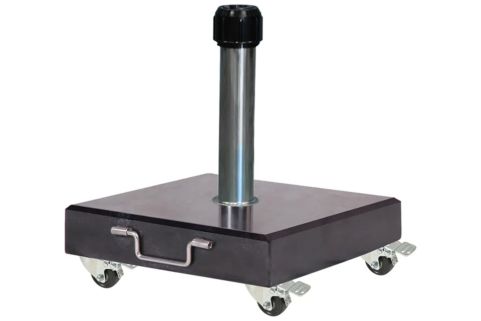Verlies jezelf in de zomerse ambiance met de Platinum Parasolvoet Rome Graniet met Wielen. Deze imposante parasolvoet van 40 kg zorgt voor een uitstekende stabiliteit, zodat je met een gerust hart kunt relaxen in de schaduw van je parasol op die warme, zonovergoten dagen. Het verfijnde granietuiterlijk is niet alleen een lust voor het oog, maar past ook perfect bij diverse stijlen in jouw tuin of op het terras.
