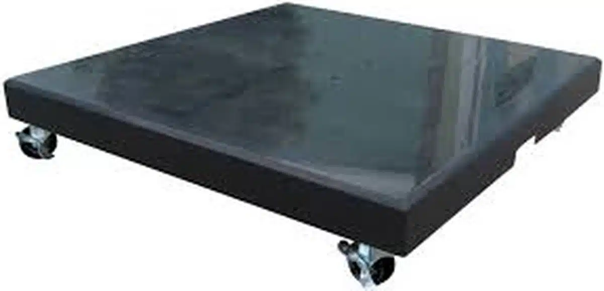 De Sens Line granieten parasolvoet in zwart biedt een stabiele basis voor je parasol en heeft afmetingen van 70 x 70 x 10 cm. Dankzij het gedegen gewicht blijft de parasol stevig staan, ook bij lichte wind. Het strakke zwarte oppervlak voegt een moderne touch toe aan ieder buitenmoment.