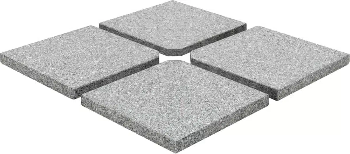 De vidaXLGrijs parasolvoeten set bevat vier losse platen van natuursteen graniet die samen een stevige basis vormen voor uw parasol.