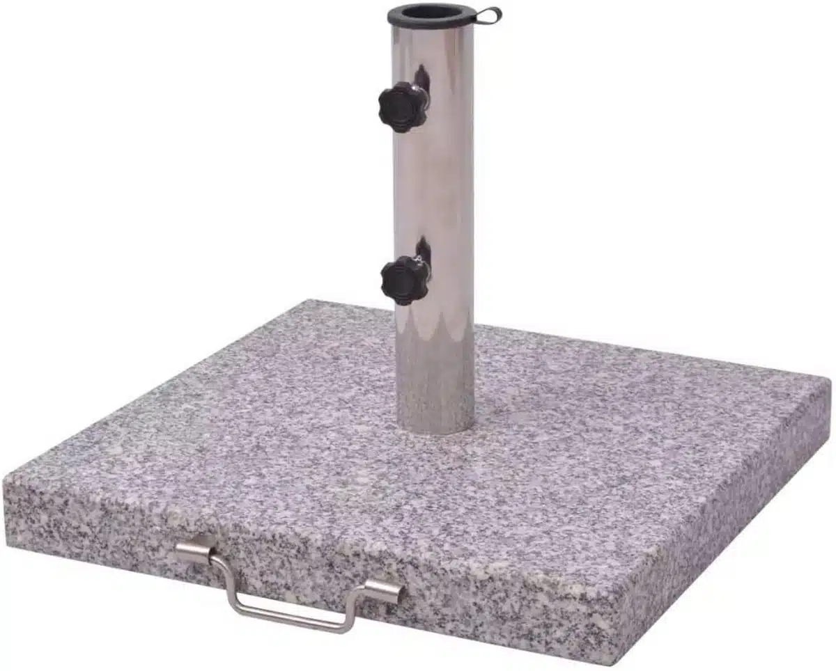 De voet is ontworpen om met veel gangbare parasols samen te werken, waardoor het een veelzijdige keuze is. Plaats de parasol, zet de voet op zijn plek en geniet van een stabiele schaduwplek. Deze zware vierkante voet met hendel is een praktische en duurzame oplossing voor iedereen die een solide basis zoekt voor de parasol.