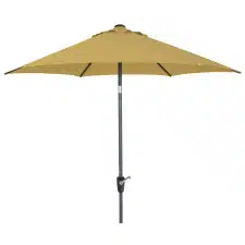 Prima 250 cm parasol in zonnig geel, degelijk en stabiel. Eenvoudig in gebruik en geeft volop schaduw bij warme dagen.