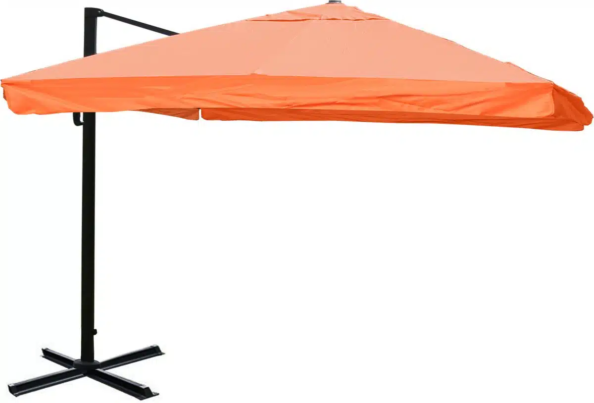 Praktisch gebruik staat centraal. Het kantelmechanisme laat toe de hellingshoek snel aan te passen zodat schaduw volgzaam beweegt met de zon. De draaibare voet maakt plaatsing eenvoudig en flexibel zodat de parasol telkens perfect gepositioneerd kan worden. Samen zorgen deze functies voor veel gebruiksgemak bij evenementen of in de huiselijke tuin.