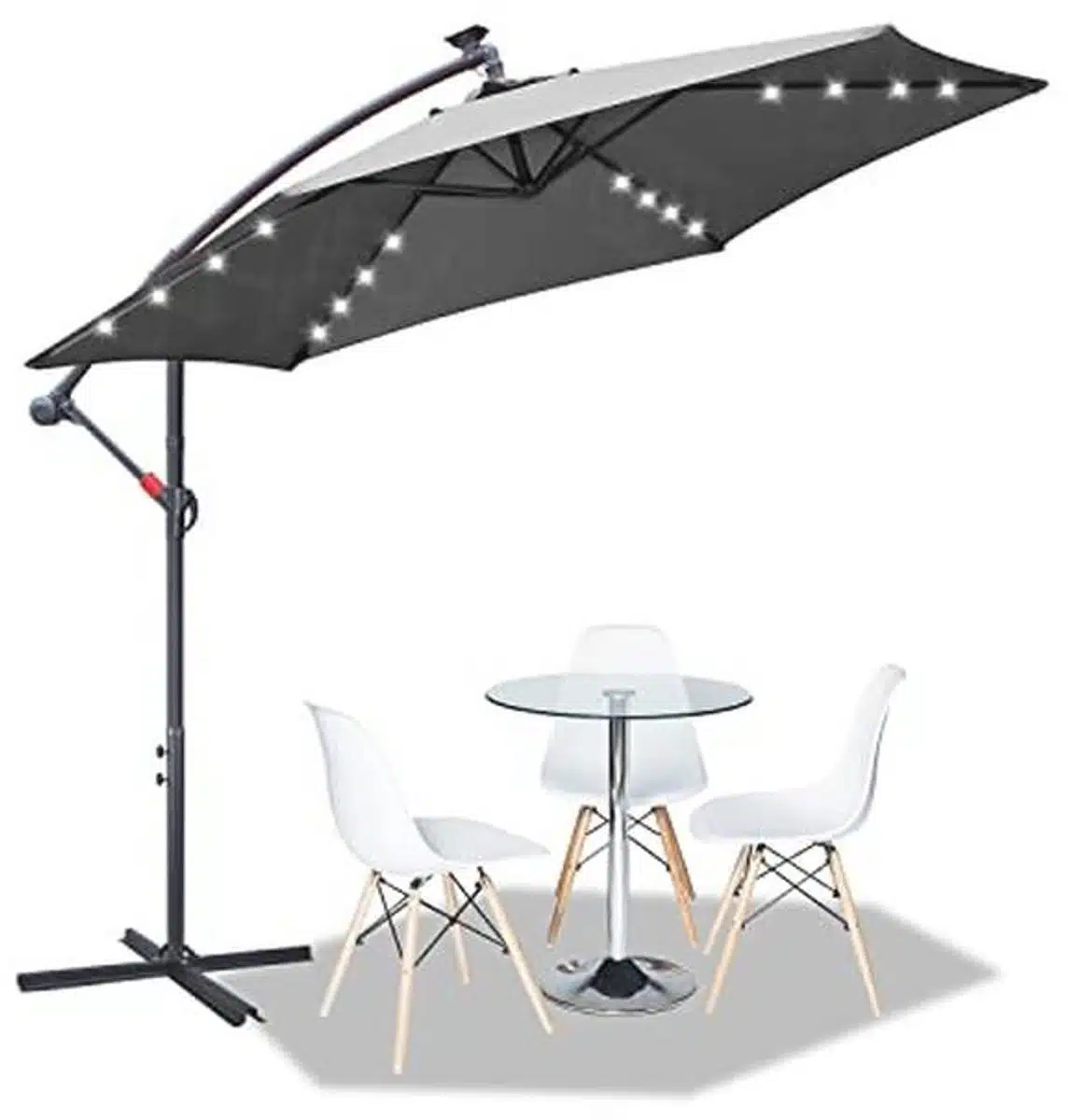 De parasol is uitgerust met geรฏntegreerde LED verlichting waardoor u ook na zonsondergang kunt genieten van buitenruimtes. De lampjes zijn energiezuinig en zorgen voor een warme, aangename sfeer. Dankzij het slimme ontwerp is de verlichting netjes weggewerkt in het frame zodat het geheel slank en modern oogt.