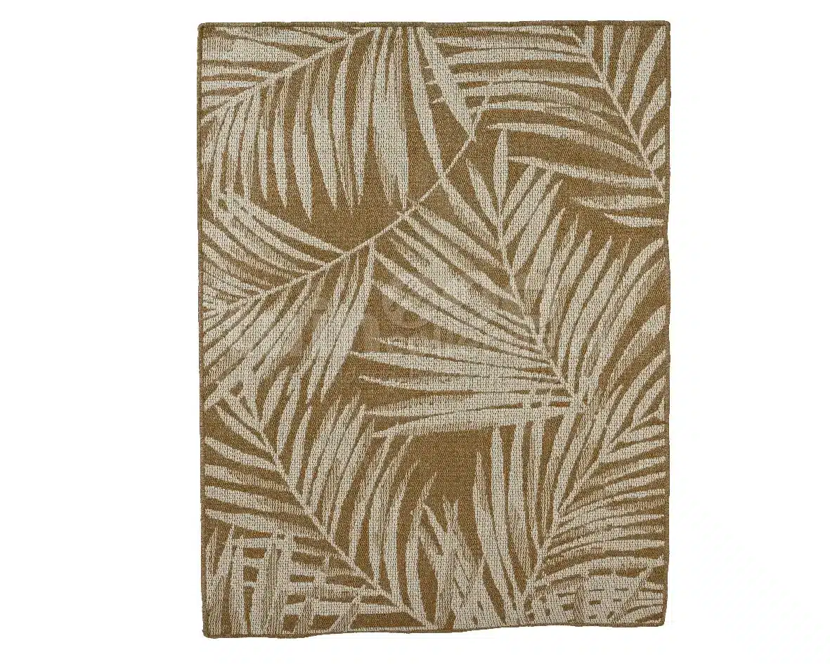 Breng extra sfeer aan je buitenruimte met een tuinkleed. Leg het buitenkleed onder de tuintafel, een zitje of loungeset. Dit vloerkleed voor buiten is 200cm lang en 150cm breed. Hij is gemaakt van polypropyleen en heeft een jute uitstraling met een palmblad design. De basis van het buitenkleed heeft een bruine naturel kleur en het bladpatroon is wit. Berg hem in de wintermaanden eenvoudig op door hem op te rollen en op te bergen en je geniet jarenlang van een mooi kleed.