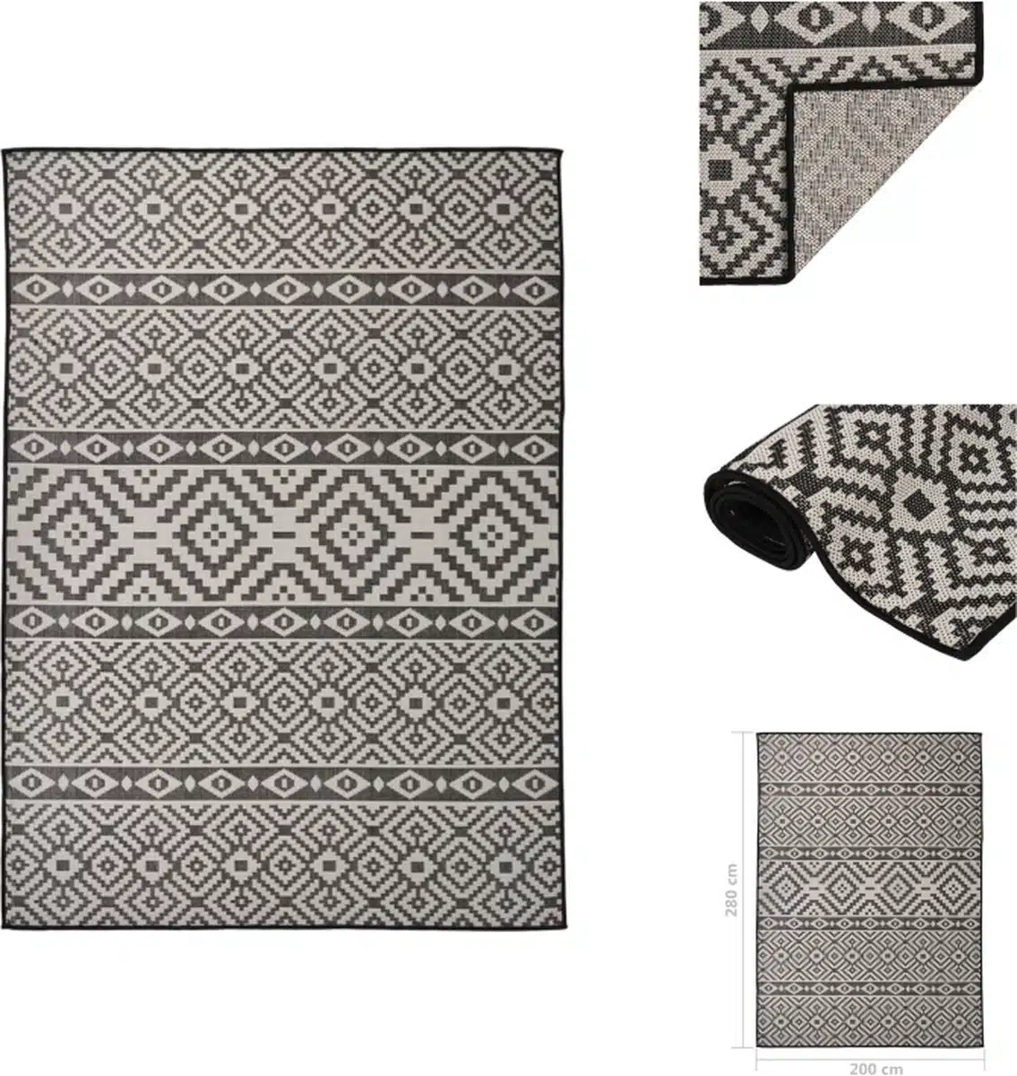 Buitenkleed met patroon platgeweven 200×280 cm zwart Als je een buitenruimte hebt die beschermende matten nodig heeft, zoek dan niet verder dan dit tuinkleed!