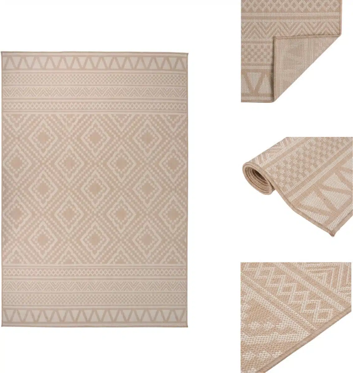 De platgeweven vloerkleden zijn gemaakt van duurzaam polypropyleen en zijn dus robuust. Dankzij het uv- en weerbestendige ontwerp is het vloerkleed geschikt voor op je terras of balkon.