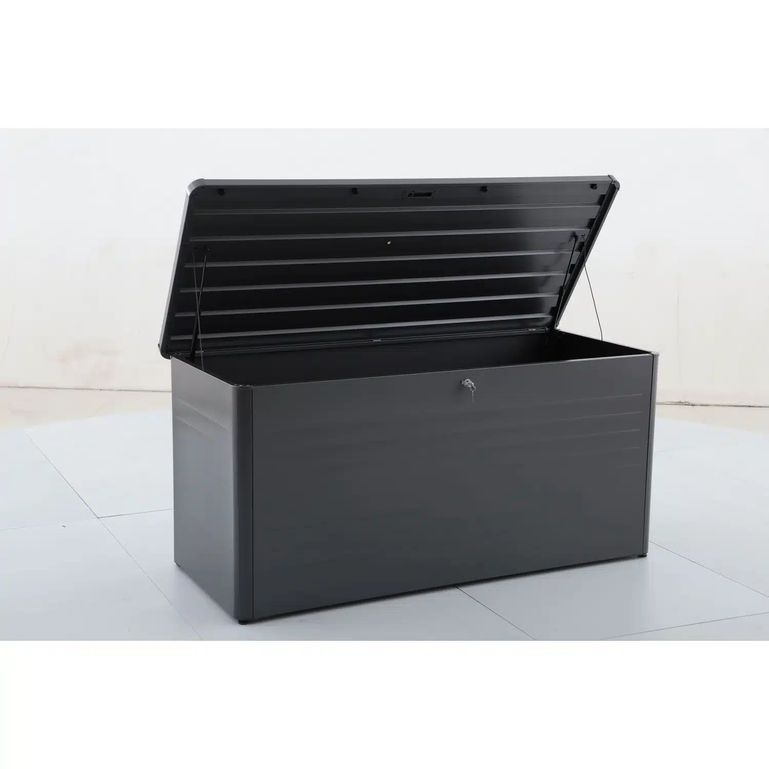 De central park strongbox – staal – antraciet – 180x79x83cm – 1030l is een extra ruime kussenbox voor al je loungekussens, tuinmateriaal en andere buitenspullen. Deze robuuste opbergbox tuin houdt alles netjes opgeborgen รฉn beschermd tegen weer en wind. Algemene beschrijving deze stalen kussenkist is uitgevoerd in een strakke antracietkleur en past perfect op je terras, in de tuin of naast het tuinhuis. Dankzij het grote volume van 1030 liter is hij ideaal voor wie veel kussens of accessoires overzichtelijk en veilig wil opbergen. De belangrijkste specificaties * materiaal: gegalvaniseerd staal met poedercoating * kleur: antraciet * capaciteit: 1030 liter * waterbestendigheid: waterdicht * afsluitbaar: ja, inclusief slot (1 stuk) afmetingen en capaciteit * buitenafmetingen (lxbxh): 180 x 79 x 83 cm * binnenafmetingen (lxbxh): 175 x 80 x 73 cm met zijn inhoud van 1030 liter heb je meer dan genoeg ruimte voor dikke loungekussens, dekens en tuinaccessoires. Functies en gebruiksgemak * vo
