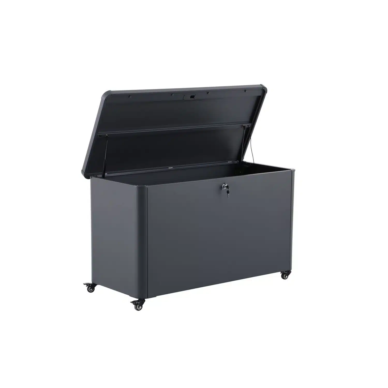 De central park kussenbox – staal – antraciet – 134x62x78.5cm – 500l is dé oplossing om jouw tuinkussens, speelgoed of tuingereedschap netjes, droog én veilig op te bergen. Dankzij het robuuste gegalvaniseerde staal met poedercoating en het slimme ontwerp blijft alles beschermd tegen weer en wind. Met de geïntegreerde wielen verplaats je deze ruime kussenbox moeiteloos over je terras of balkon. Algemene beschrijving deze stijlvolle opbergbox tuin is een blikvanger in iedere buitenruimte dankzij de moderne antracietkleur en het strakke design. De central park kussenkist is ideaal voor gebruik in de tuin, op het terras of zelfs op het balkon. Of je nu veel loungekussens, tuinaccessoires of speelgoed hebt: deze storage box is perfect voor gezinnen, hobbytuiniers en iedereen die van orde houdt. De belangrijkste specificaties * materiaal: gegalvaniseerd staal met poedercoating * kleur: antraciet * capaciteit: 500 liter * waterbestendigheid: waterdicht * afsluitbaar: ja (slot inbegrepen) af