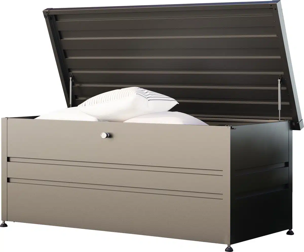 Stevige en ruime tuinbox die kussens en gereedschap droog en netjes houdt. Het antraciet past mooi in de tuin, montage ging snel en de afwerking voelt degelijk.