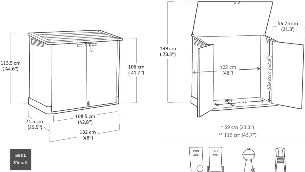 Helemaal tevreden met de Grote Tuin Opbergbox Nova 880L, ruim en stevig en echt weerbestendig. Alles blijft droog en netjes opgeborgen, de grijze kleur staat mooi in de tuin. Makkelijk in gebruik en onderhoudsvriendelijk, een echte aanrader!