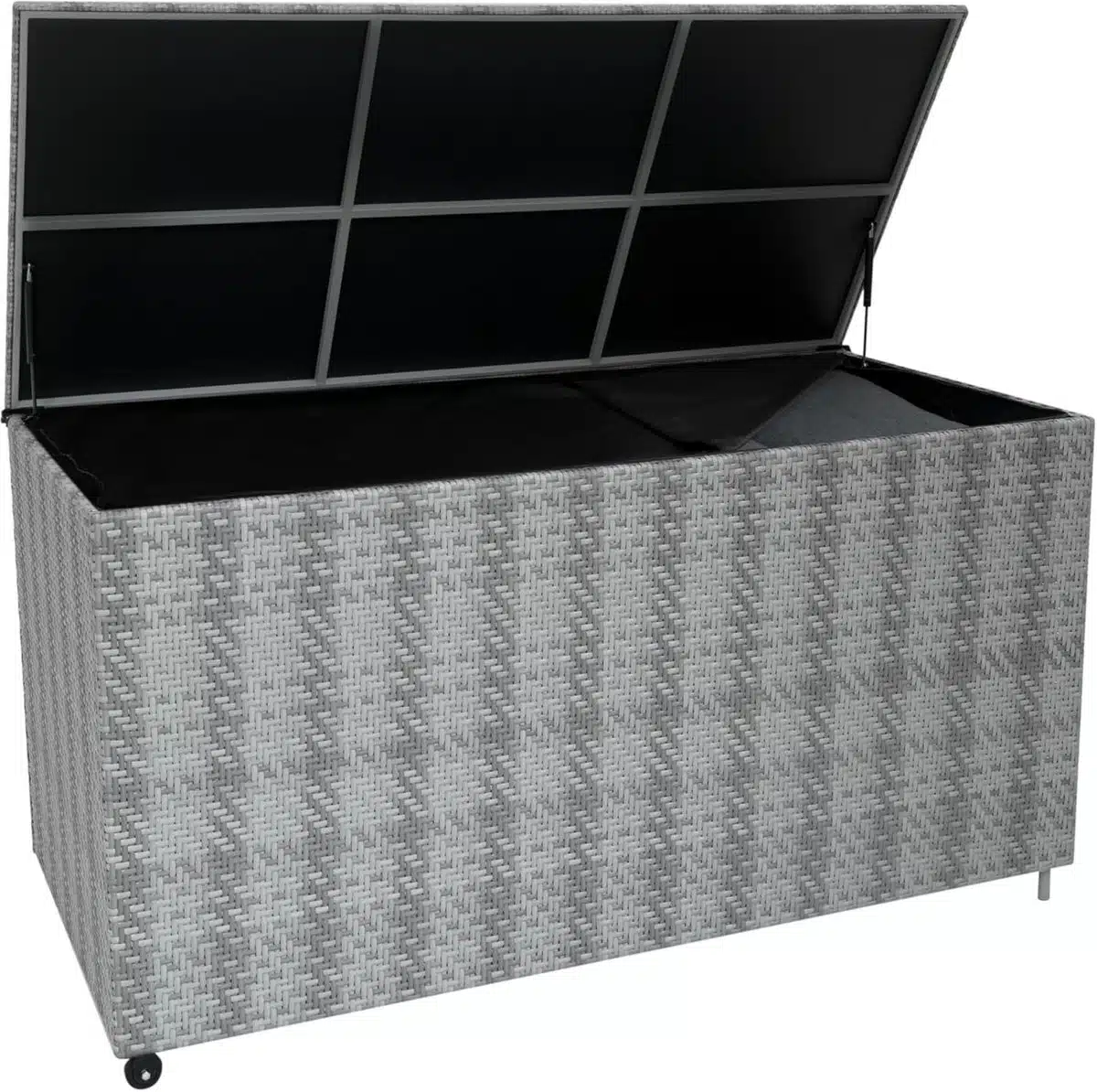 De stevige constructie voelt betrouwbaar aan zonder merklogo, een subtiele keuze voor wie een minimalistische uitstraling verkiest. Dankzij het lage gewicht en de geรฏntegreerde wielen verplaats je de box eenvoudig over terras of oprit, zelfs wanneer hij deels gevuld is. De handgrepen maken het manoeuvreren extra comfortabel, en de vergrendelbare deksel zorgt voor extra veiligheid.