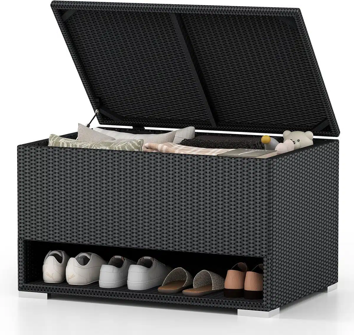 Deze ruime waterdichte tuinopbergbox met schoenenrek heeft een inhoud van 186L en biedt een betrouwbare oplossing voor buitenopslag. Het eenvoudige merkloze design past moeiteloos in elke tuin en zorgt voor een rustige uitstraling zonder op te vallen. Door de afsluitbare deksel blijven kussens schoenen en kleinere spullen beschermd tegen regen en vuil.