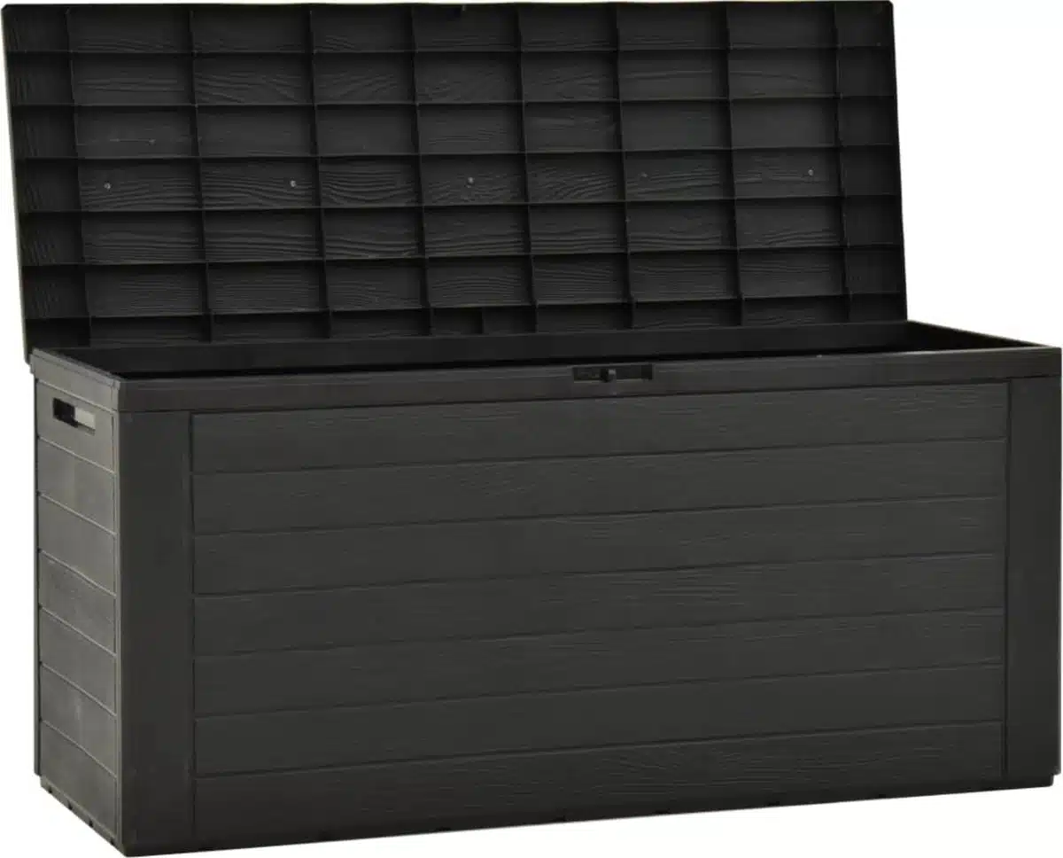 Het materiaal is duurzaam, weerbestendig plastic, maken de opbergdoos perfect voor zowel indoor en outdoor gebruik. De hout-geweven ontwerp geeft de zaak een subtiele maar tijdloze look, dus het past in goed met elk interieur. Deze opbergbox is gemakkelijk te monteren.