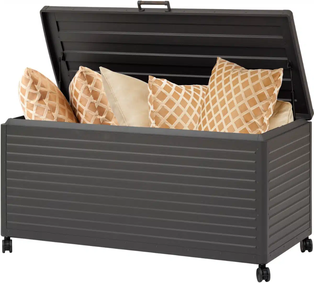 De opbergbox heeft een doordacht ontwerp met ventilatieopeningen die luchtcirculatie mogelijk maken zodat vochtvorming wordt beperkt. Dankzij het solide slotvlak kunt u een hangslot plaatsen voor extra beveiliging wanneer dat nodig is. Het lage gewicht in combinatie met robuuste constructie maakt verplaatsen mogelijk zonder veel kracht. Ideaal voor seizoenopslag van textiel maar ook voor tuingereedschap of kinderspeelgoed. Met dit model kiest u voor een functionele en elegante oplossing die praktisch gebruik combineert met een moderne vormgeving.