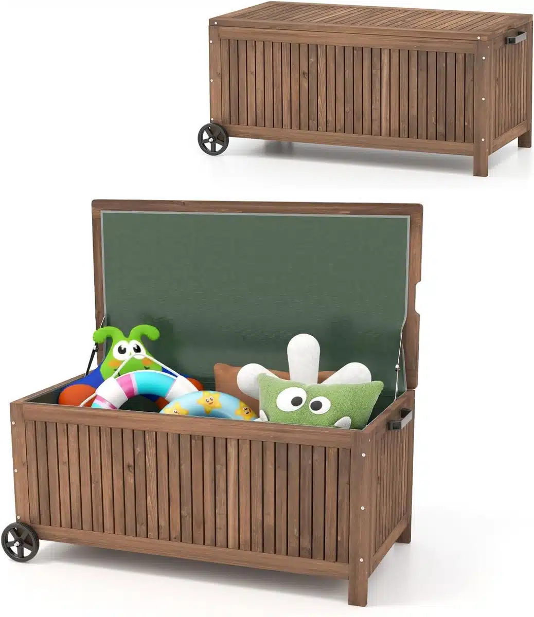 Grote capaciteit van 213 liter: deze ruime houten opbergdoos biedt 213 liter opbergruimte voor al je behoeften. De juiste hoogte zorgt ervoor dat tuinhandschoenen, gereedschap, outdoormatten, speelgoed en nog veel meer gemakkelijk toegankelijk zijn.