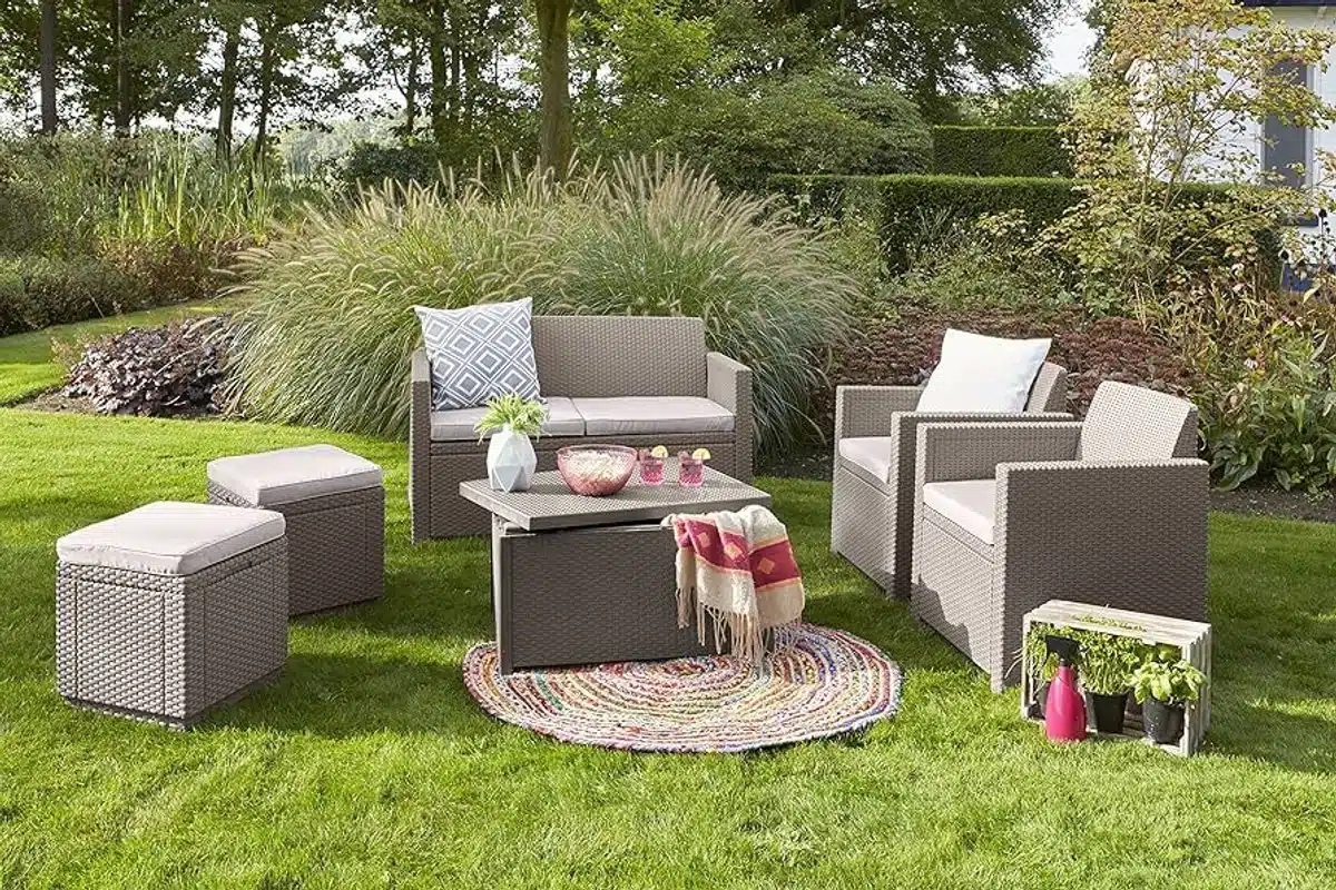 Het deksel opent naar een ruime opbergbox die geschikt is voor kussens, tuingereedschap, speelgoed en andere accessoires. Dankzij de slimme binnenruimte blijft alles netjes opgeborgen en uit het zicht, wat zorgt voor een opgeruimde uitstraling op terras en in woonruimte.
