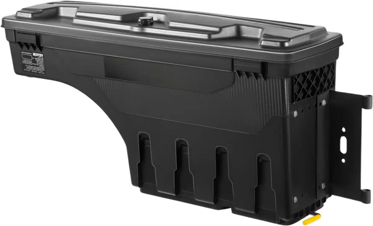 Toegankelijk & Efficiรซnt Bevestig de box eenvoudig aan de zijwand van de laadbak. Dankzij het draaibare ontwerp schuif je de box moeiteloos naar je toe zonder in de laadbak te stappen. Ideaal voor onderweg of op de werkplaats – alles binnen handbereik zonder gedoe.