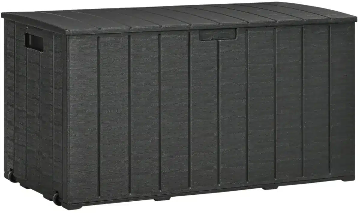 Robuuste en stijlvolle opbergbox voor buiten: Met een inhoud van 366 liter en afmetingen van 122,4 cm x 62 cm biedt deze waterdichte opbergbox voldoende ruimte voor tuingereedschap, apparatuur en meer. De duurzame dubbelwandige kunststof constructie en het soepel lopende deksel zorgen voor gebruiksgemak. Twee handgrepen en wielen maken het verplaatsen moeiteloos, of de box nu leeg of vol is.