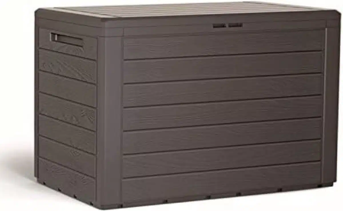 Een afsluitbaar deksel geeft extra zekerheid tegen wind en dieren. De schone afwerking werkt goed in compacte tuinen maar ook op grotere terrassen als extra opbergruimte. De box is praktisch voor seizoensopslag en voor dagelijks gebruik wanneer je snel kussens wilt opbergen.