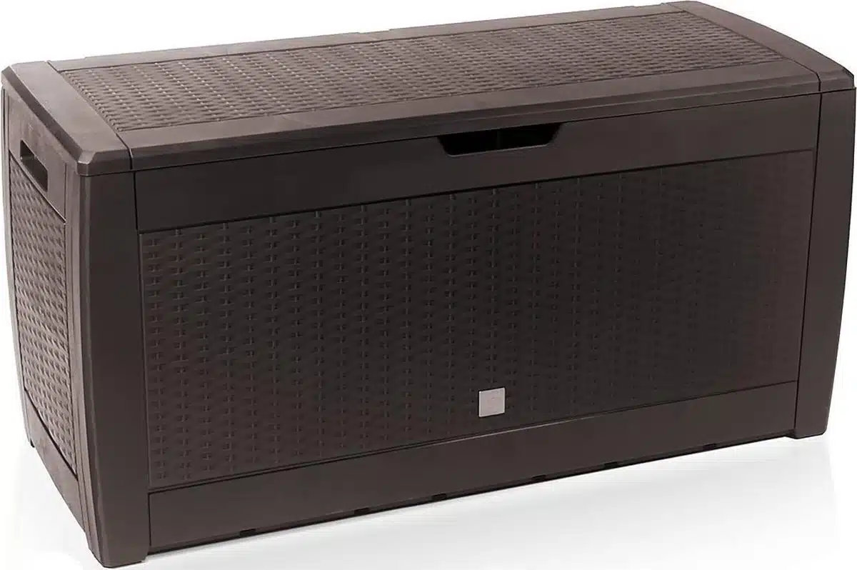 De box is bovendien licht van gewicht zodat je hem eenvoudig verplaatst naar een andere plaats op het terras of in de berging. Dankzij het slimme ontwerp is er ruimte voor een slot zodat je waardevolle spullen afgeschermd blijven. Het strakke design past bij moderne en klassieke buitenmeubels en door de neutrale HB Bruin kleur vormt de opbergbox een subtiele aanvulling op iedere buitenomgeving.