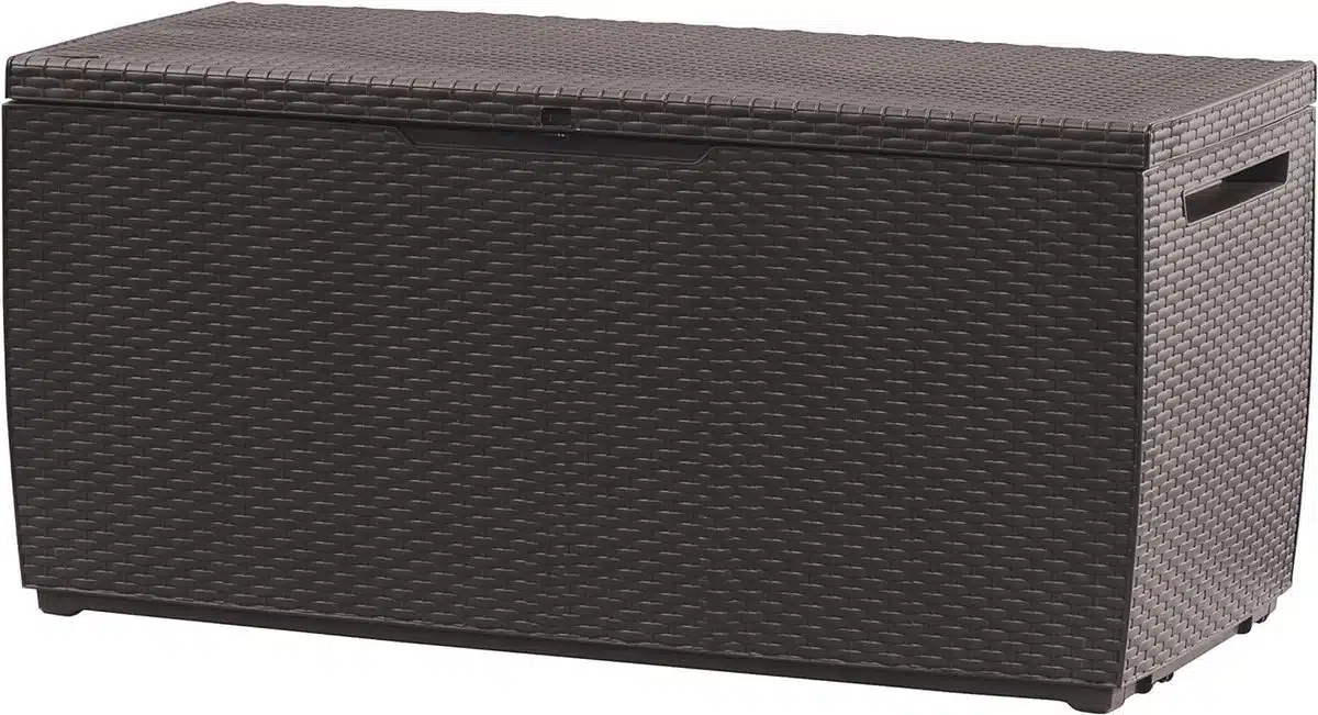 Deze ruime opbergbox voor buiten biedt een inhoud van 305 liter en is ideaal voor wie extra bergruimte nodig heeft voor het terras of de tuin. De box is vervaardigd van dikwandig kunststof in een warme bruine tint en combineert stevigheid met onderhoudsarme eigenschappen. Dankzij het weerbestendige materiaal blijven kussens en accessoires droog en goed beschermd tegen regen en vocht. Het neutrale, merkloze ontwerp past moeiteloos bij verschillende tuinstijlen en vormt een onopvallende maar handige toevoeging aan uw buitenruimte.