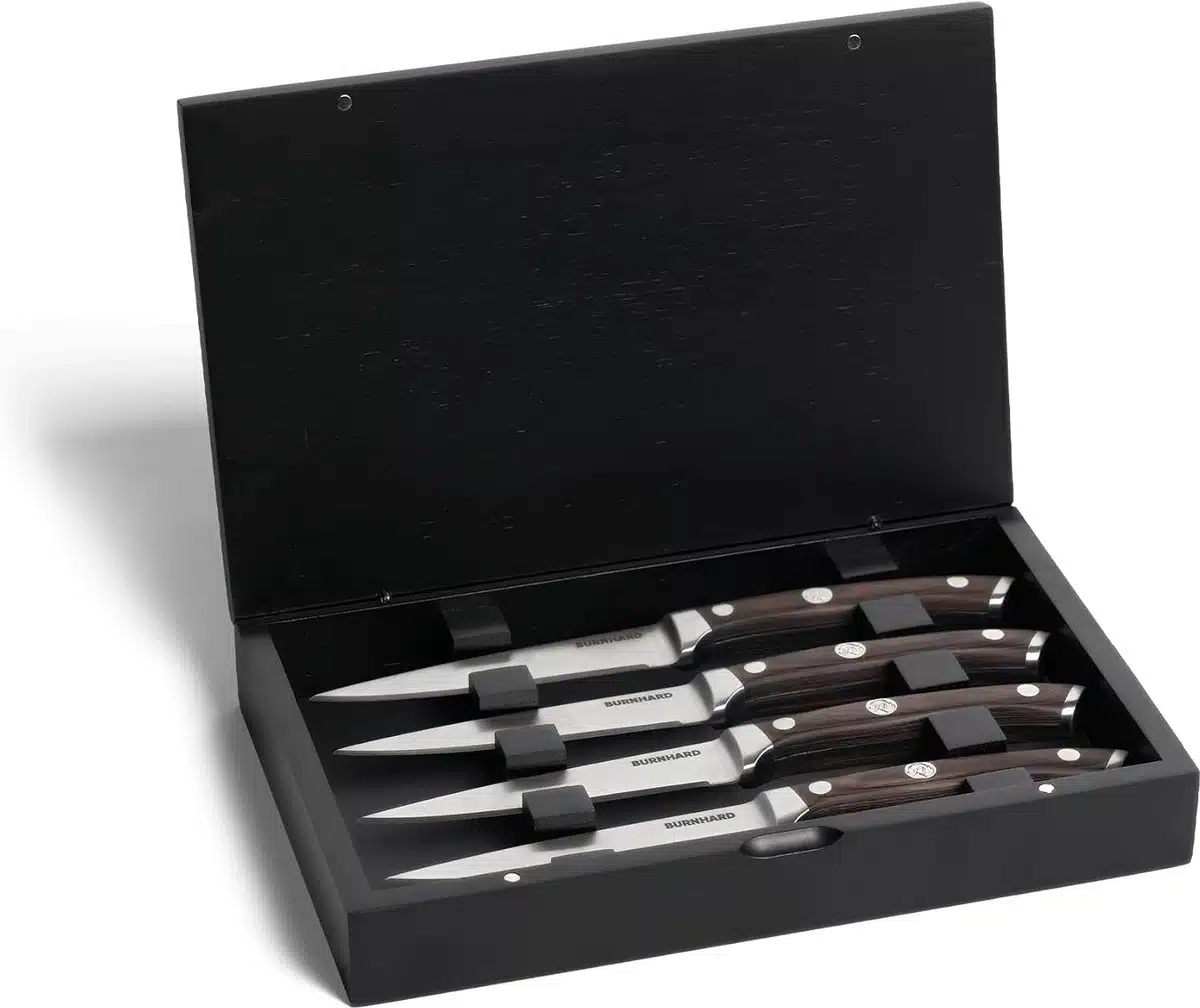 Deze set van vier steaksnijders brengt kwaliteit en stijl naar elke maaltijd. De messen zijn scherp geslepen zodat vlees moeiteloos en precies wordt aangesneden. Dankzij de ergonomisch gevormde handgrepen ligt elk mes comfortabel in de hand tijdens gebruik. Het ontwerp geeft goede controle en vermindert vermoeidheid bij langere maaltijden of tijdens het snijden van stevige stukken vlees.