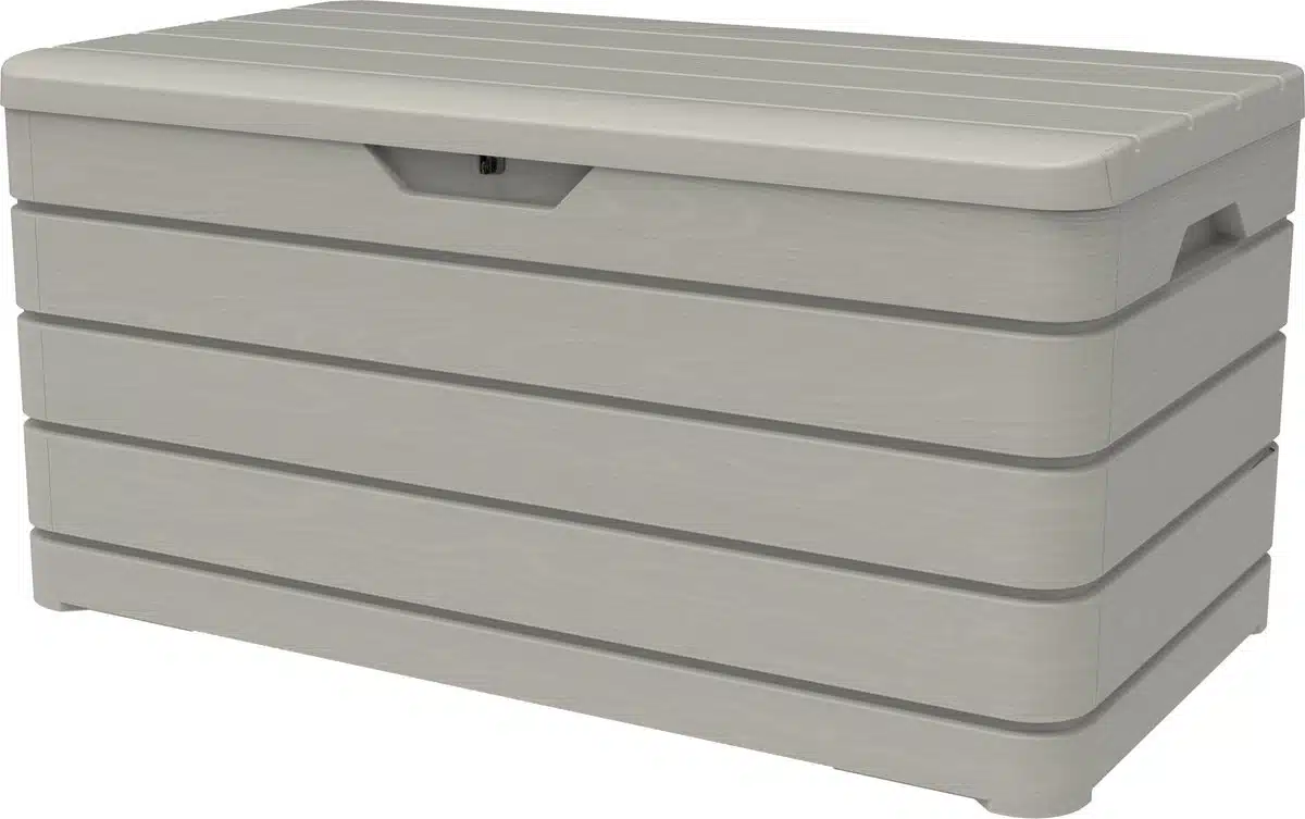 Toomax Dolomiti opbergbox 500 liter – grijs De Toomax Dolomiti opbergbox is de perfecte oplossing voor het opbergen van kussens, tuinaccessoires en andere spullen in je tuin of op je terras. Deze stijlvolle en functionele opbergbox biedt een combinatie van gebruiksgemak, duurzaamheid en een aantrekkelijk ontwerp. Door het grote volume van 500 liter is er genoeg plek voor het opbergen van bijvoorbeeld tuinkussens of verschillende soorten tuingereedschap. De opbergbox beschikt over een hangslotvoorziening zodat je de box volledig kan afsluiten. (hangslot niet meegeleverd).
